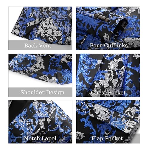 Fabric type: Outer: 90% Polyester 10% Lurex Lining: 100% PolyesterCare instructions: Dry Clean OnlyOrigin: ImportedSize Reference: 3XS≈30R, XXS≈32R, XS≈34R, S≈36R, M≈38R, L≈40R, XL≈42R, XXL≈44R. Choose a size based on your body chest measurement (e.g. size 3XS fits a 30” chest). Check the size chart for detailsStylish Floral Design: Stand out with our elegant floral tuxedo blazer, crafted in textured jacquard fabric that adds a sophisticated touch to your formal or party attireSlim Fit Blazer: Designed with a modern slim fit cut to accentuate your physique while providing comfort—perfect for fashionable men who want to look sharp at every occasionPaisley Tuxedo Jacket: Crafted from premium fabric, this notched lapel dress blazer has a smooth and elastic feel. The advanced print technology ensures an exquisite and exquisite pattern, making it a superior quality choicePerfect Gift Option: The stylish suit jacket for men like this is an ideal gift for any man. The mens sport coats and blazers suitable for Casual, Party, Wedding, Prom, Date, Work and other occasions. Dry clean recommended Perfect for everyday use. superior materials and excellent craftsmanship ensure long-lasting durability.