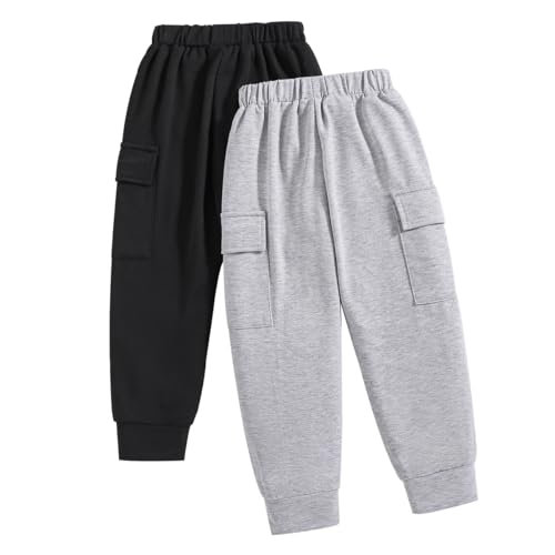 Boys Casual Pants-Solid Color Soft Trousers Jogger Pants-Toddler Boys 2 Pack Sweatpants Set (3-7T) 2