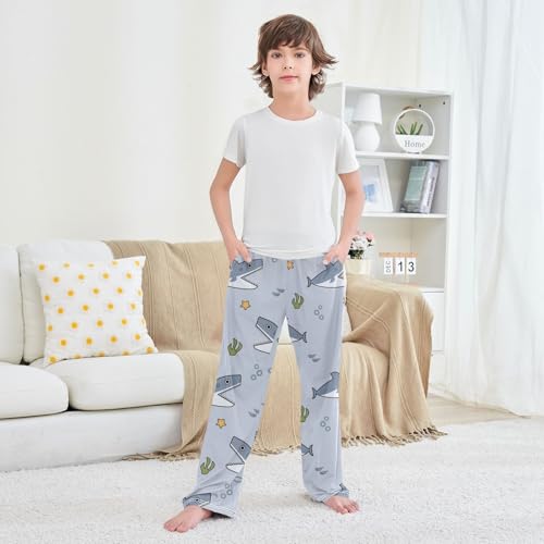 Shark Cartoon Boys Pants Boys Athletic Pants Long Pant for Boywith Pockets Wide-Leg Size 6-14Y 6