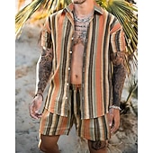 More information about Men's Shirt Set T-shirt Suits 2 Pieces Outfits Tee & Shorts Short Sleeve Shirt Collar Summer Stripes Fashion Casual 2 Piece Vacation Daily Wear Going out Blue Orange Top Tee for Men