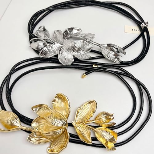 Golden Tulip Flower Belt with Skirt Jeans Decorated with Black Leather Rope Thin Waist Chain Women's Waist Chain Belt 6