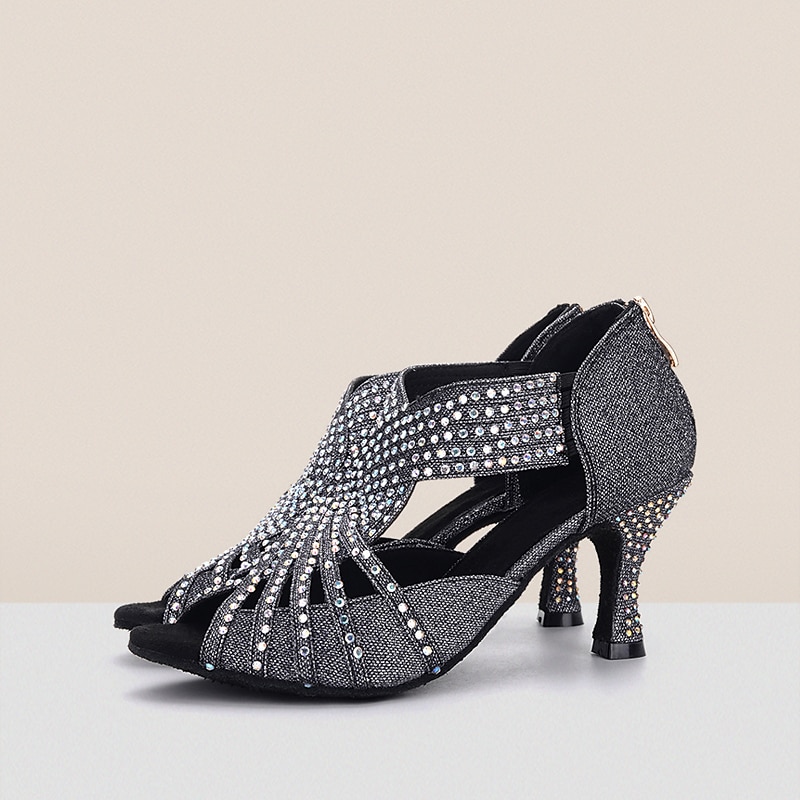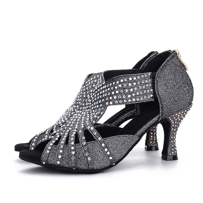 Women's Rhinestone Dance Sandals – Glittering Open-Toe Ballroom Shoes with Zipper Closure for Salsa, Latin, and Dance Events 6