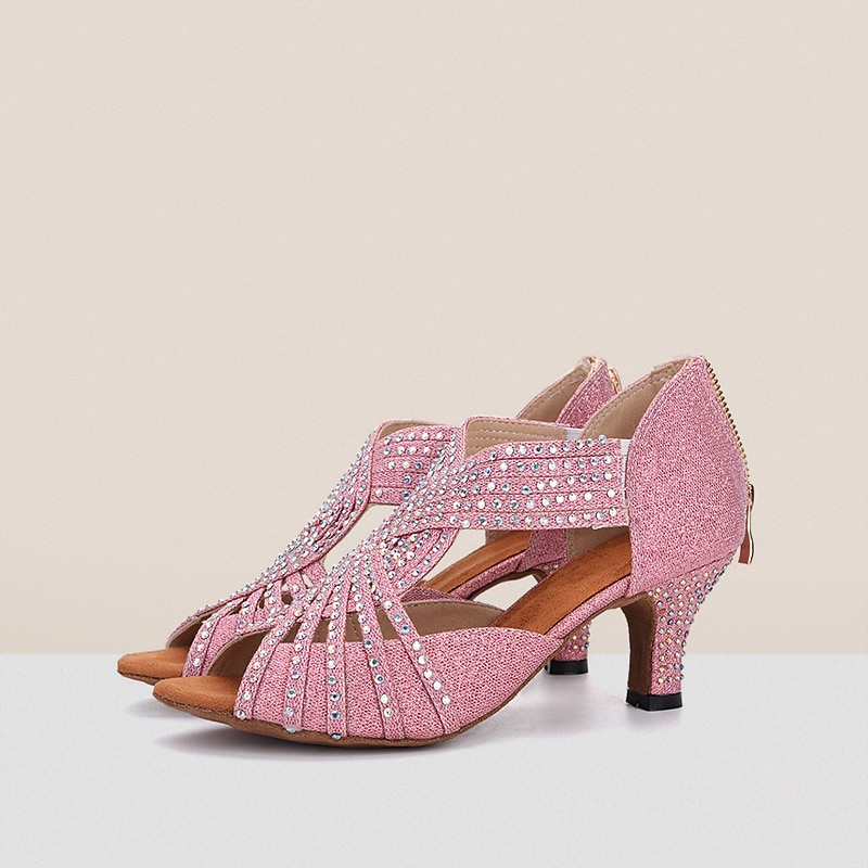 HOT ! Women's Rhinestone Dance Sandals – Glittering Open-Toe Ballroom Shoes with Zipper Closure for Salsa, Latin, and Dance Events