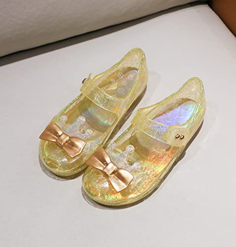 Jelly Shoes for Girls Princess Dress Up Flat Sandals for Toddler Cosplay Clear Glitter Jellies Mary Janes with Bow/Crown