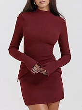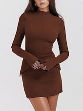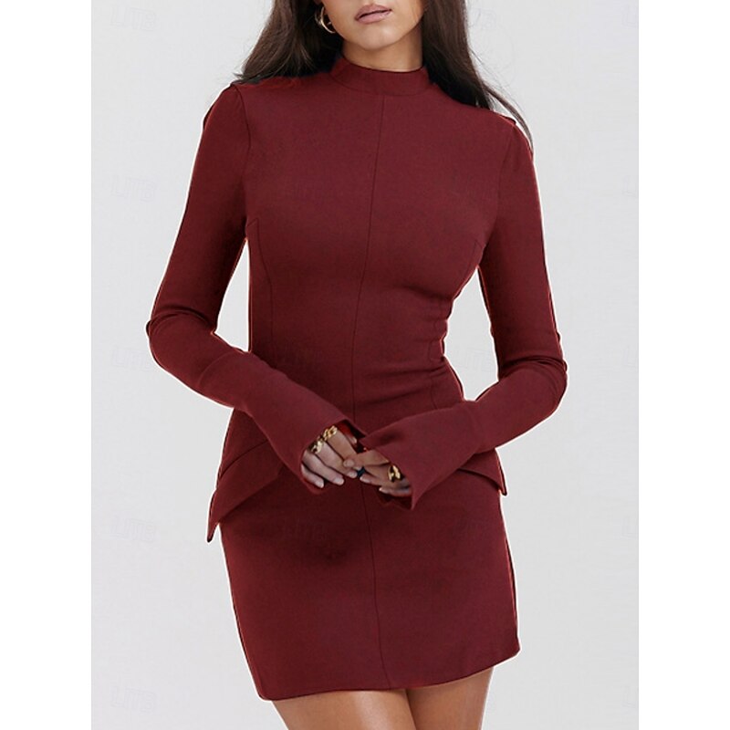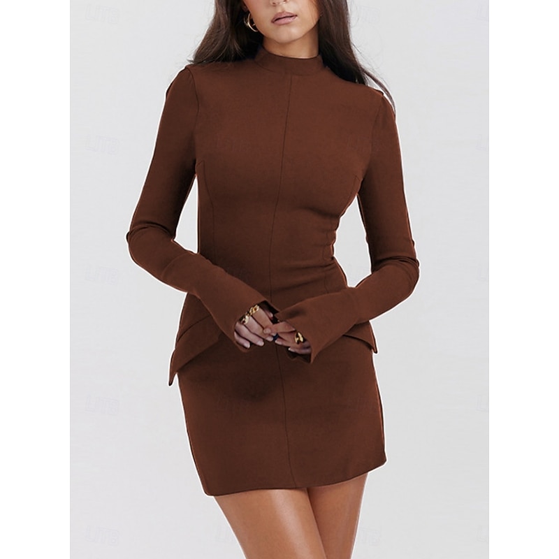 More information about Women's Mini Dress Casual Dress Sheath Dress Fashion Modern Outdoor Party Daily Regular Fit Plain Long Sleeve Crew Neck Black Wine Blue Brown Spring Fall Winter Autumn
