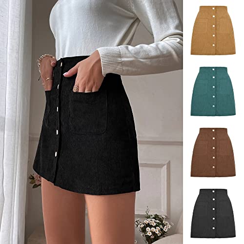 HOT ! Corduroy Skirts for Women, A-Line Skirts Button Down High Waist Short Skirts with Pockets, Vintage Bodycon