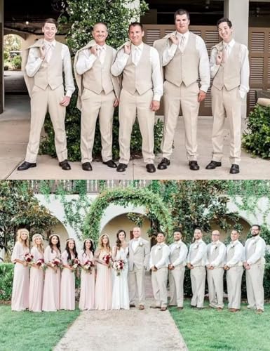 trending ! ONAXTDA Mens Slim Fit Vest and Pants Set Linen Casual 2 Piece Wedding Groomsmen Suit Waistcoat