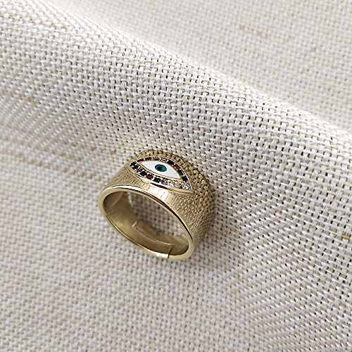 Blue Turkish Evil Eye Cubic Zirconia Wide Round Rings for Women Statement Band Stacking Finger Expandable Open Adjustable Size Gold Plated Elegant Sparkly Dainty Fashion Protection Jewelry Wedding Promise Mother Daughter Friendship Birthday 7