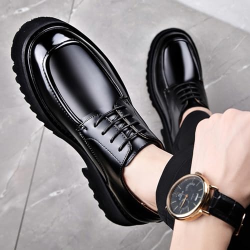 Men's Genuine Leather Lace Up Chunky Platform Oxfords Comfortable Wide Round Toe Chunky Heel Lug Sole Non-Slip Dress Shoes for Casual Work Office Business 6