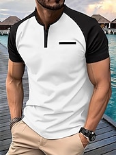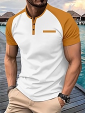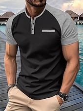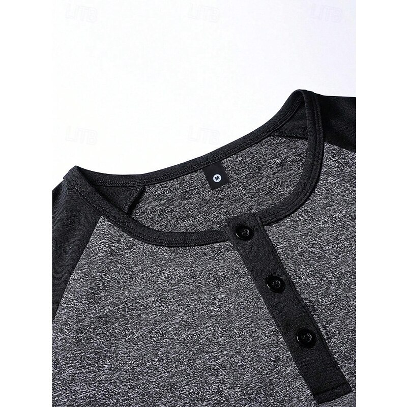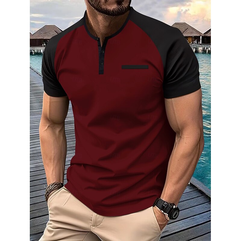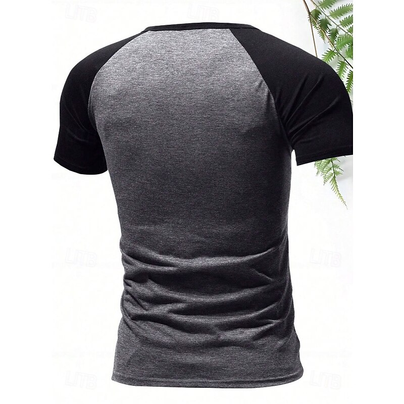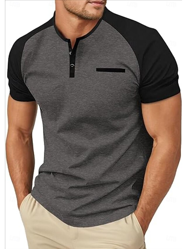 More information about Men's Henley Shirt Tee Top Short Sleeves Crewneck Summer Solid / Plain Color Casual Casual / Sporty Raglan Sleeves Sports & Outdoor Sports Dark Grey Wine Black & White Top Tee for Men
