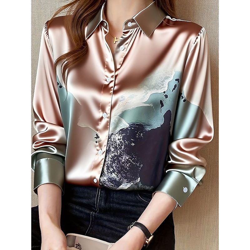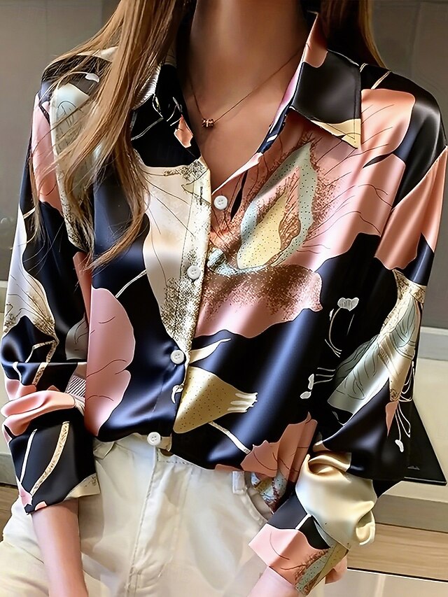 More information about Women's Shirt Work Shirt Floral Graphic Elegant Stylish Casual Long Sleeve Shirt Collar Regular Tops Work Daily Sage Green Pink Spring Fall