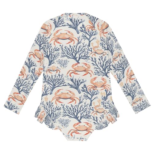 ALAZA Crab Coral Reef Red Blue Girls One Piece Swimsuit Long Sleeve Rashguard Swimsuit UV 50+ Swimwear Zip 1