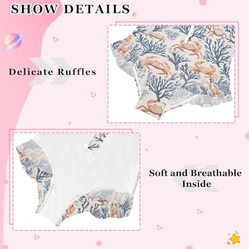 ALAZA Crab Coral Reef Red Blue Girls One Piece Swimsuit Long Sleeve Rashguard Swimsuit UV 50+ Swimwear Zip 5