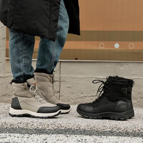 Snow Boots for Men, Slip on Waterproof Hiking Boots with Fur Lined, Mens Winter Boots Shoes Non-Slip Rubber Sole Outdoor Comfortable Walking Shoes 1