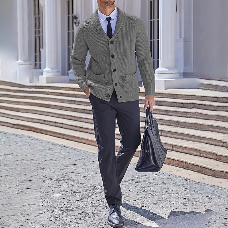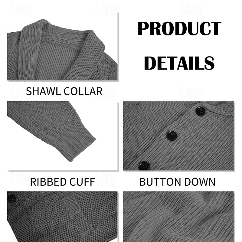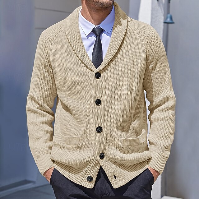 More information about Men's Cardigan Sweater Knit Sweater Ribbed Knit Regular Button Up Side Pockets Solid Color Lapel Fashion Classic Daily Wear Date Clothing Apparel Fall & Winter Black Brown M L XL