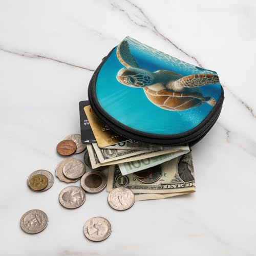 Portable Coin Purse Turtle-Swimming-Sea Mini Zippered Money Pouch Card Holder 5