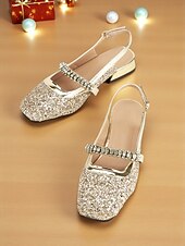 More information about Women's Gold Glitter Square Toe Low Heel Mary Jane Shoes - Rhinestone Strap Party Flats for Nightlife and Christmas Holiday Events