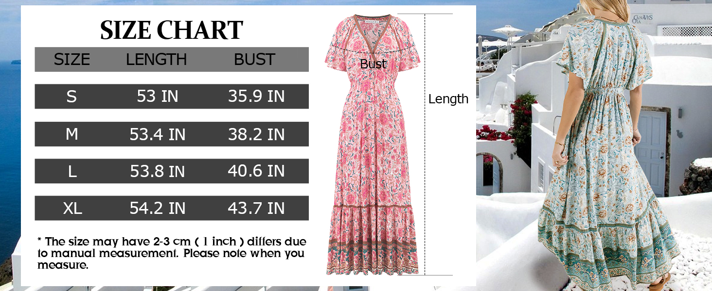 No surprises. The R.Vivimos Women's Summer V Neck Maxi Dress Boho Floral Print Short Sleeve Elastic Waist Ruffle Patchwork A-Line Beach Dress is okay.