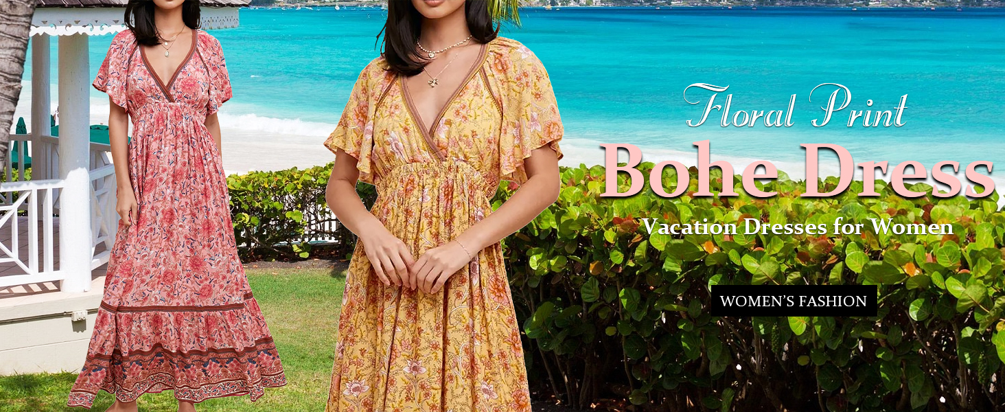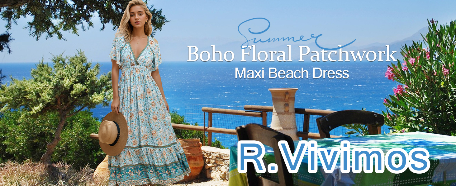 R.Vivimos Summer Elastic Waist Maxi Dresses for WomenR.Vivimos Women's Short Sleeve V Neck Pretty Garden DressesR.Vivimos Bohemian Floral Hawaiian Dresses for womenR.Vivimos A-Line Patchwork Hem Vacation Dresses for Women
