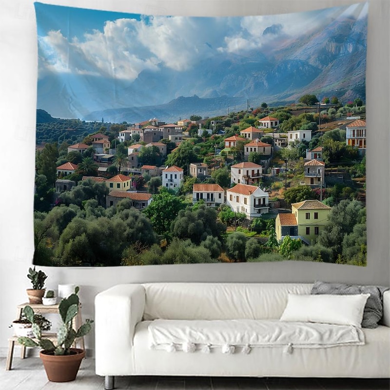 Greece Landscape Hanging Tapestry Wall Art Large Tapestry Mural Decor Photograph Backdrop Blanket Curtain Home Bedroom Living Room Decoration 9
