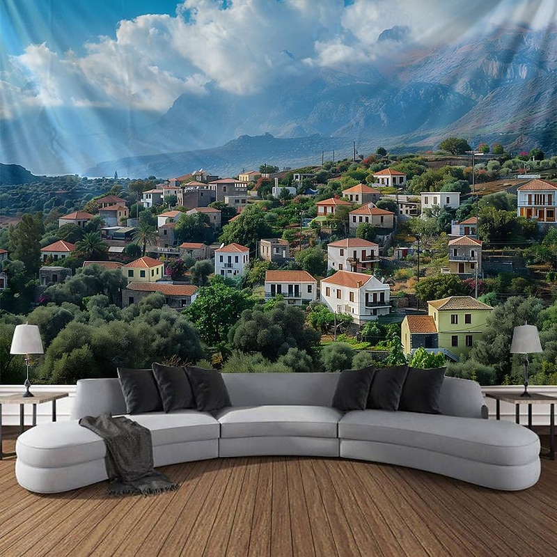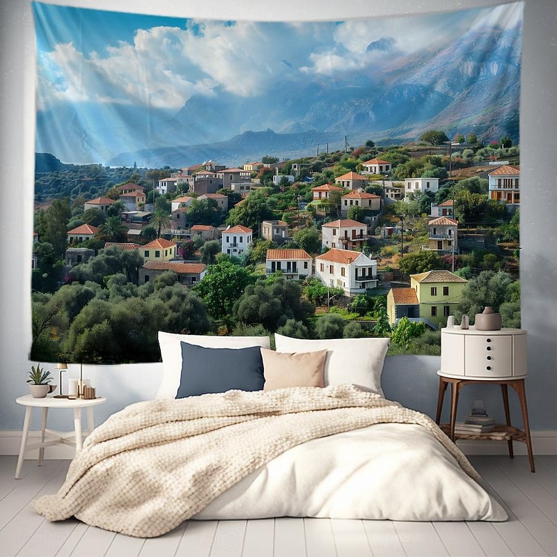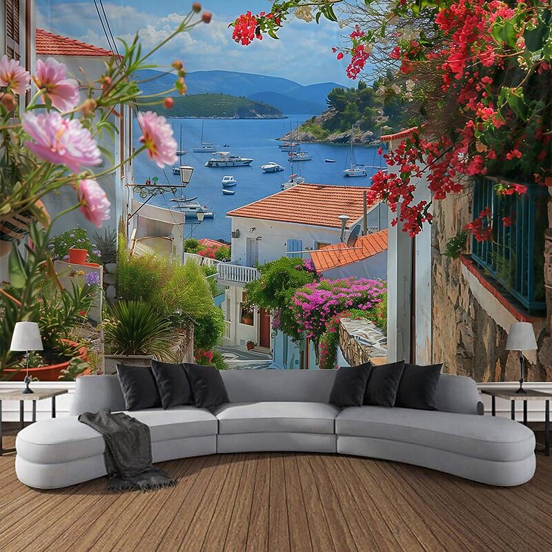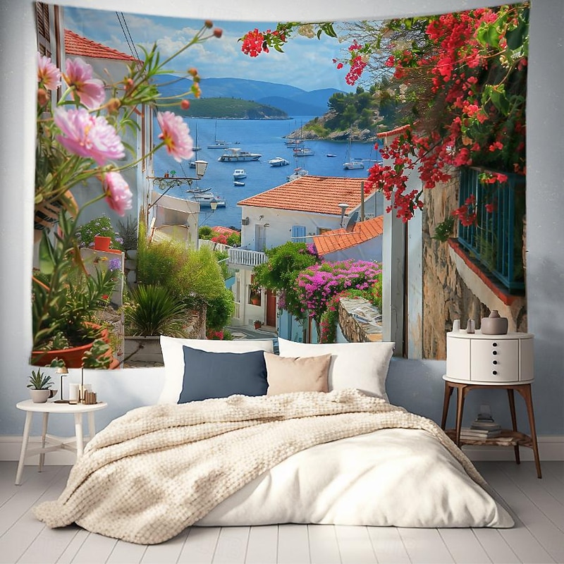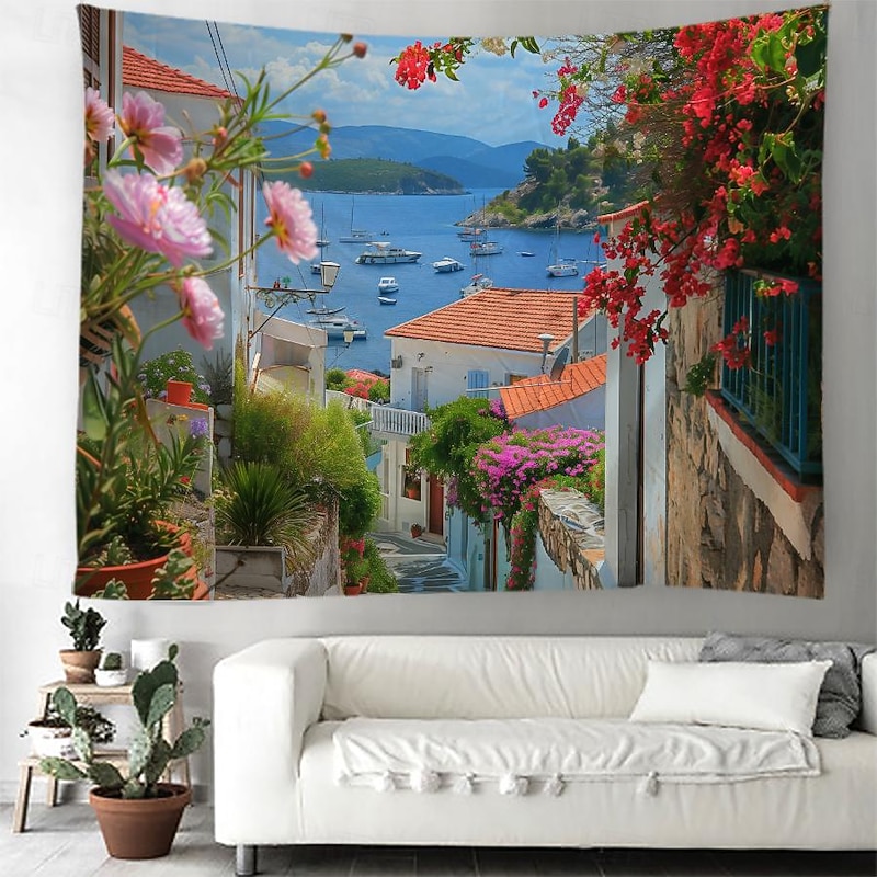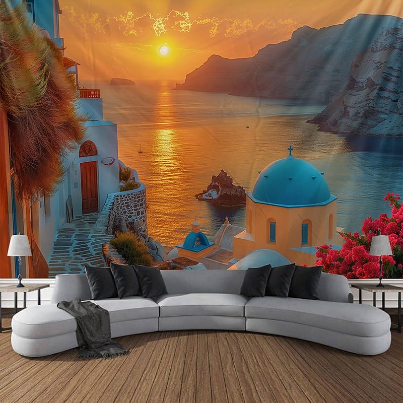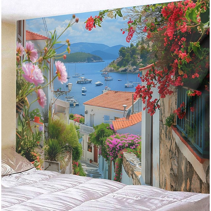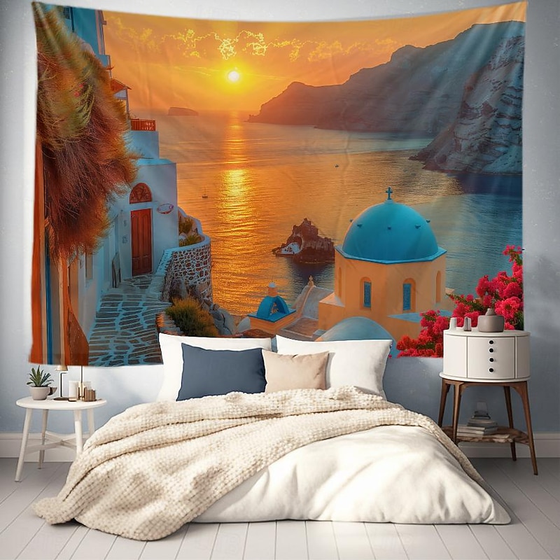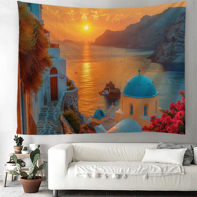 HOT ! Greece Landscape Hanging Tapestry Wall Art Large Tapestry Mural Decor Photograph Backdrop Blanket Curtain Home Bedroom Living Room Decoration