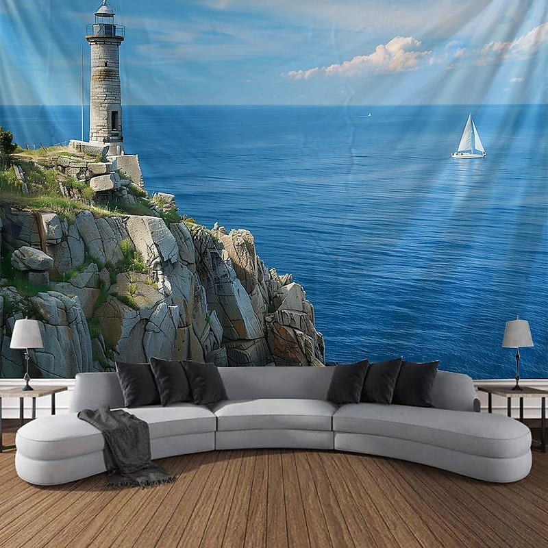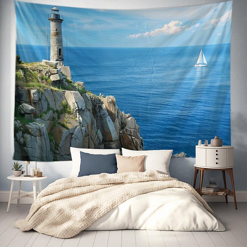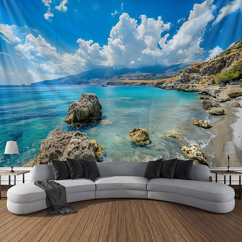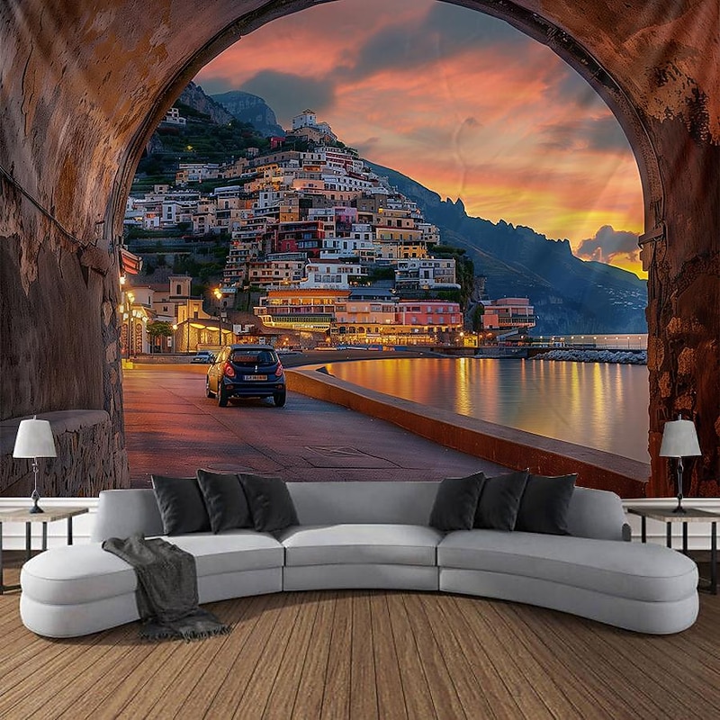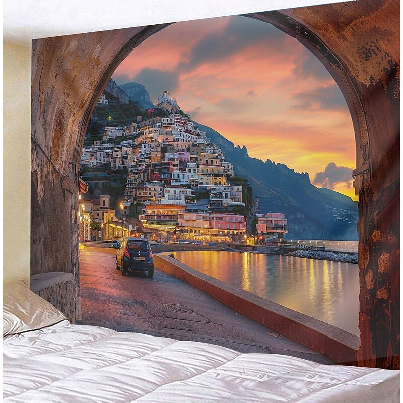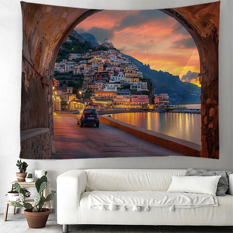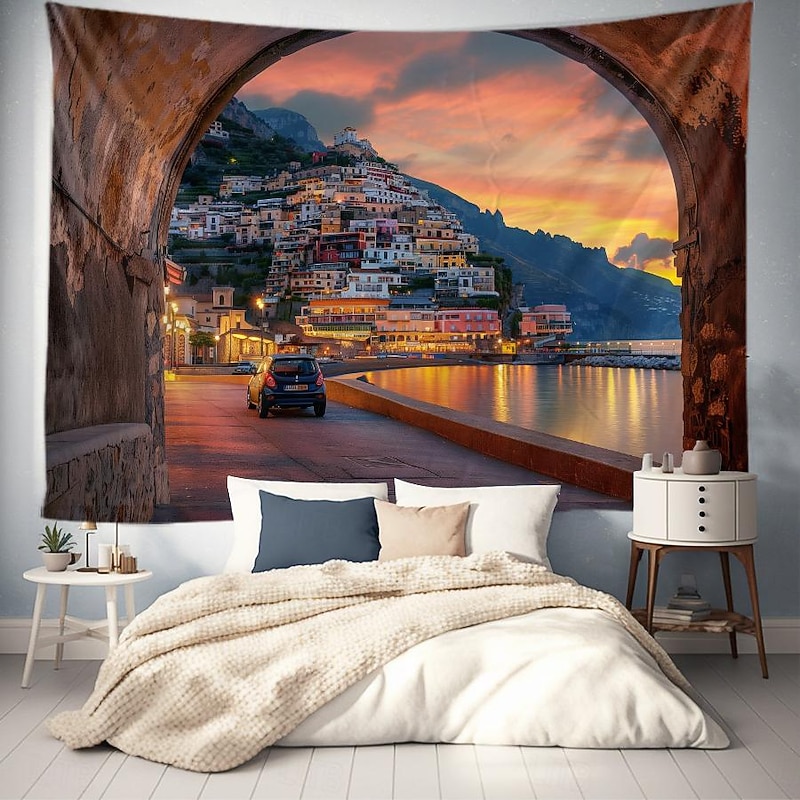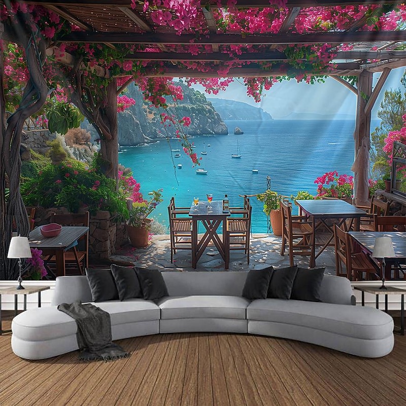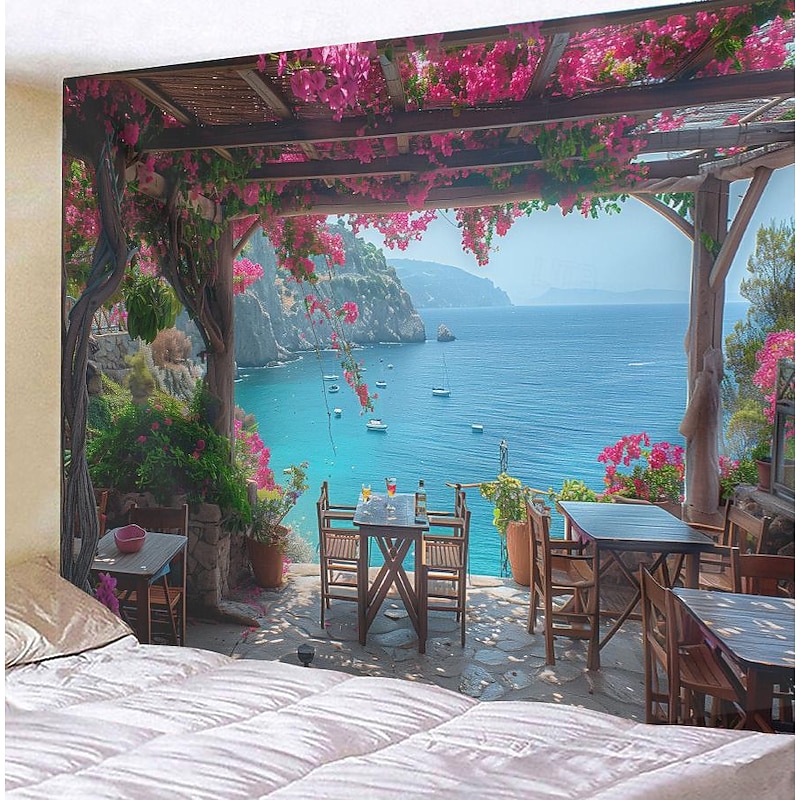 HOT ! Greece Landscape Hanging Tapestry Wall Art Large Tapestry Mural Decor Photograph Backdrop Blanket Curtain Home Bedroom Living Room Decoration