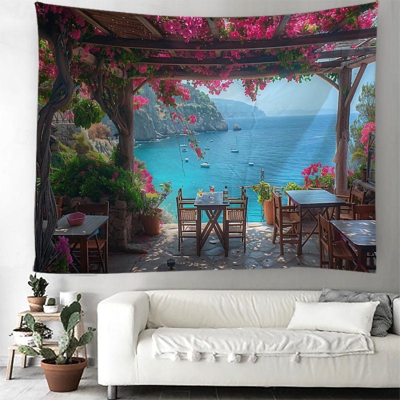 Greece Landscape Hanging Tapestry Wall Art Large Tapestry Mural Decor Photograph Backdrop Blanket Curtain Home Bedroom Living Room Decoration 7