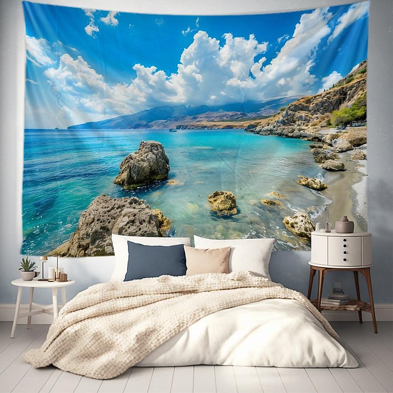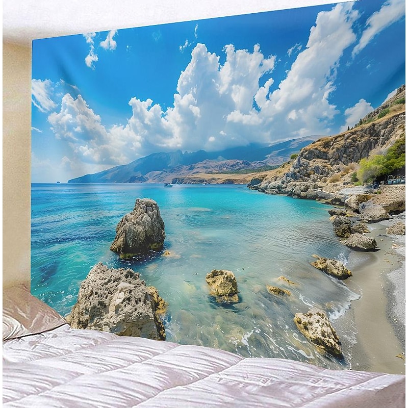 Greece Landscape Hanging Tapestry Wall Art Large Tapestry Mural Decor Photograph Backdrop Blanket Curtain Home Bedroom Living Room Decoration 48