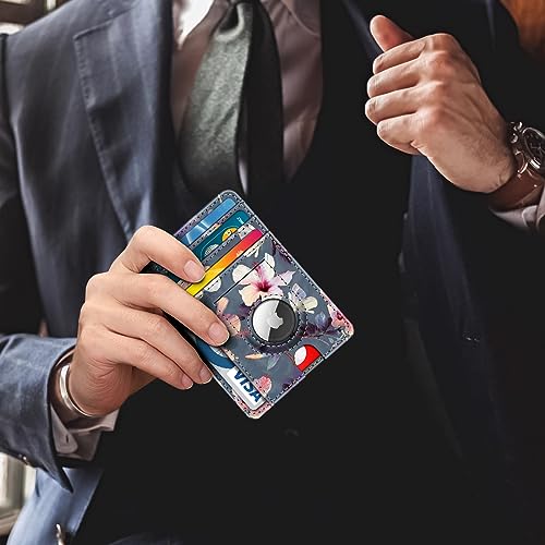 Fintie Slim Minimalist Front Pocket Wallet with Built-in Case Holder for AirTag, 7 Slots Leather Wallet with AirTag Holder, RFID Blocking Cash Credit Card 7
