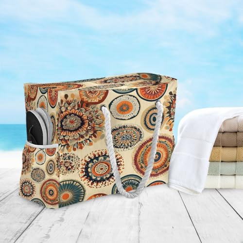 HOT ! Large Beach Bags Totes Canvas Tote Shoulder Bag Circle Aztek Geometry Water Resistant Bags for Gym Travel Daily