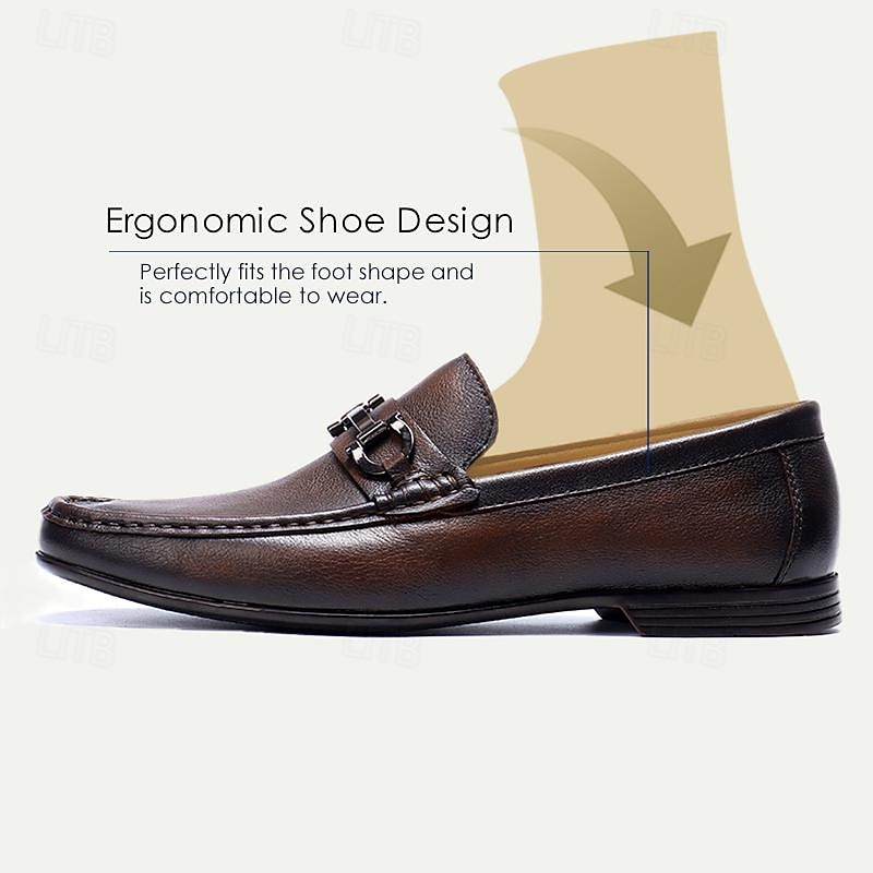 HOT ! Men's Premium Cowhide Leather Loafers with Black Metal Detail – Classic Brown Slip-On Dress Shoes for Formal and Business Attire