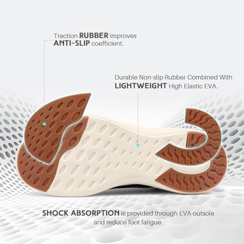 • 【EVA & Rubber Outsole】 Lightweight and flexible rubber outsole provides good grip on a variety of surfaces, and improve durability. Shock absorption is provided through EVA outsole and reduce foot fatigue.