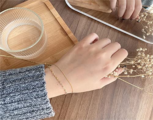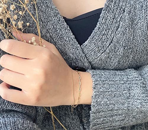 More information about 925 Sterling Silver 18K Gold Plated Dainty Paperclip Freshwater Pearls Cuban Chain Link Layered Bracelet Or Ankelt, 7" + 1" Extender, Hypoallergenic Nickel Free