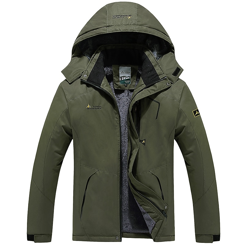 More information about Men's Hoodie Jacket Waterproof Rain Jacket Ski Jacket Fleece Jacket Winter Outdoor Solid Color Thermal Warm Waterproof Windproof Outerwear Windbreaker Coat Camping Hunting Ski / Snowboard Army Green