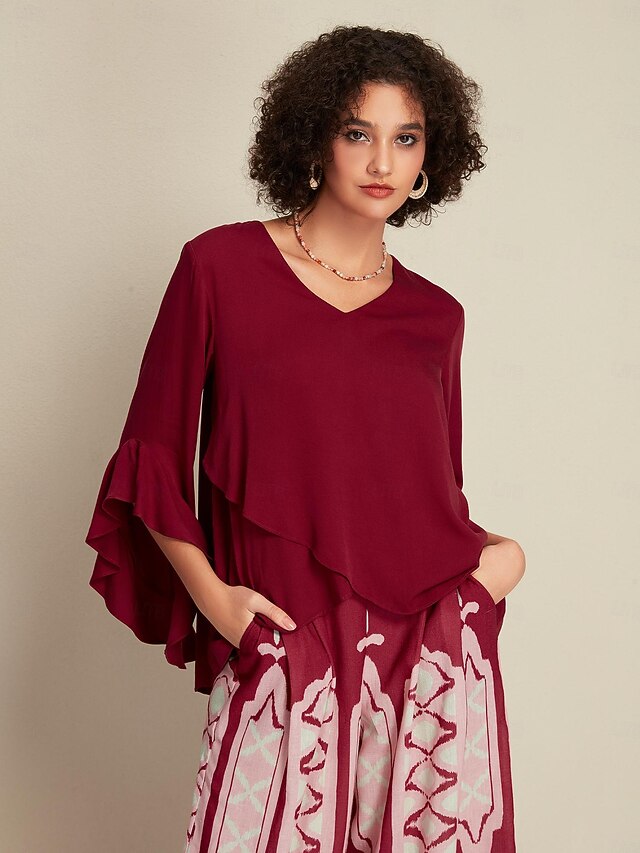 More information about Ruffle Flare Cuff Sleeve Crew Neck Blouse