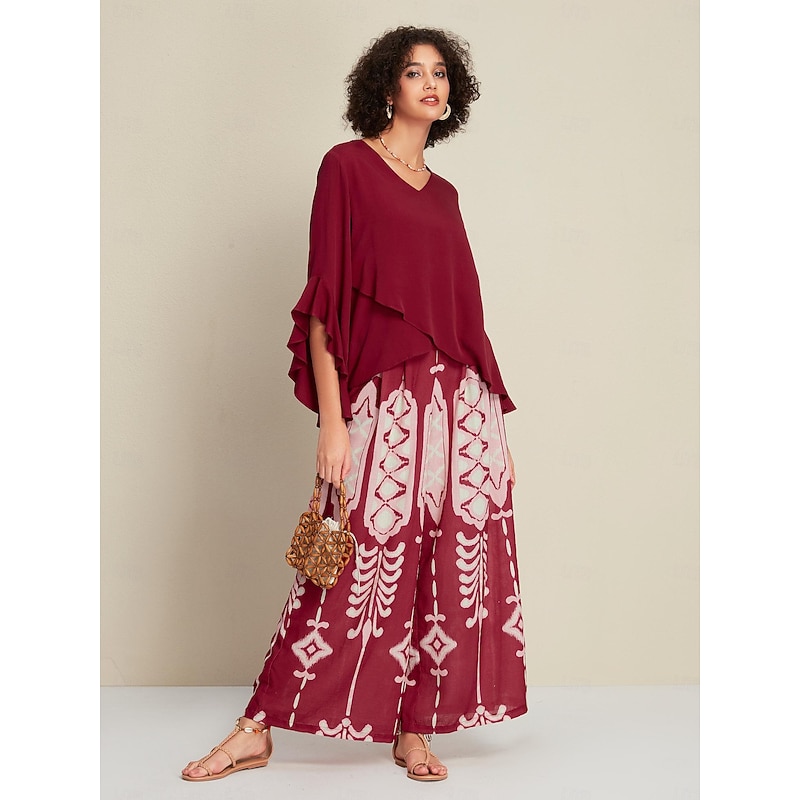 Highlights - Elegant peplum design for a feminine touch - Solid color pattern for a versatile look - Stylish ruffle detailing for added flair - Classic crew neck neckline for a timeless appeal