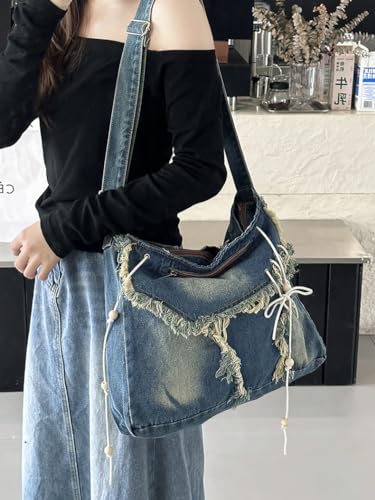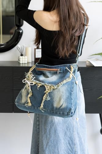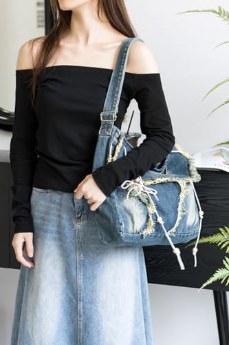 More information about Denim Tote Bag Designer Jean Handbags for Women Denim Purse Large Hobo Shoulder Bag Y2K Crossbody Bag