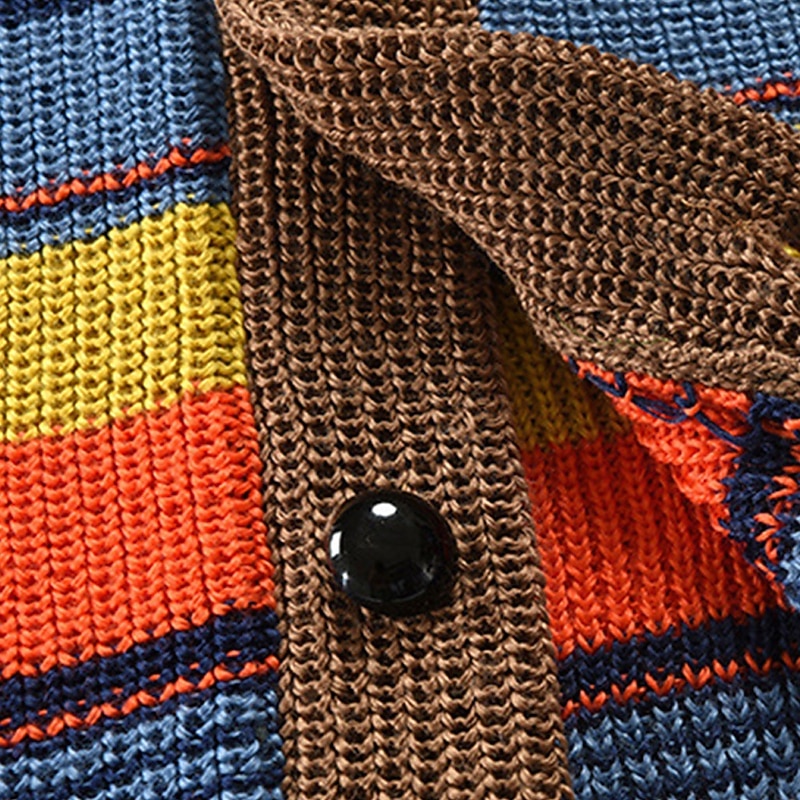 More information about Men's Cardigan Sweater Cropped Sweater Knit Sweater Ribbed Knit Regular Tops Buttons Stripes Shawl Lapel Fashion Classic Vacation Daily Wear Clothing Apparel Fall Winter Brown M L XL