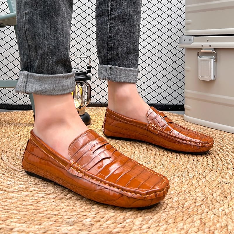 HOT ! Men's Loafers Round Toe Vegan Leather Plaid Penny Loafers Flexible Anti-Slip Flat Heel Wedding Prom Slip-ons