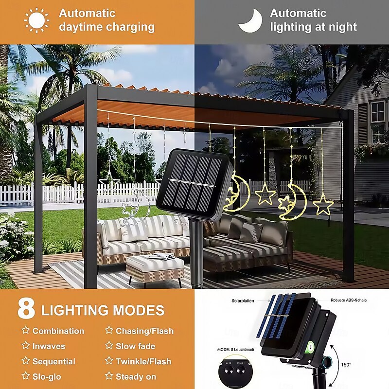 $28.99 - Led Decorative Light Solar Moon Star Light String Outdoor Waterproof Solar Curtain Light 8 Modes Of Hanging Ice Bar Light 1PC 2025. Shop for cheap Solar String Lights online? Buy at lightinthebox.com on sale today!