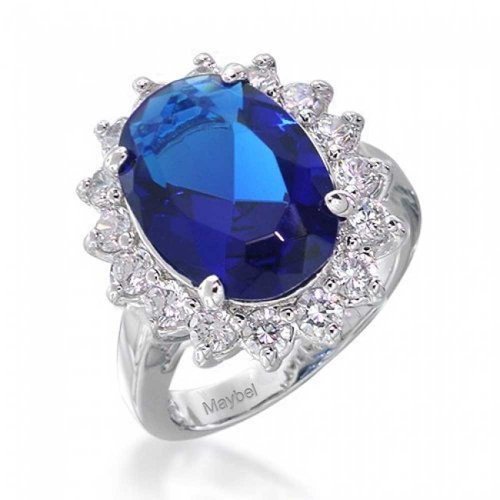 More information about Personalize Vintage Style 5-7 Karat Crown Halo Oval Cubic Zirconia Simulated CZ Yellow Royal Blue Sapphire Engagement Ring .925 Sterling Silver Customizable