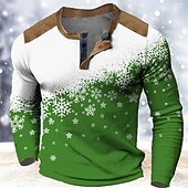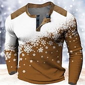 More information about Christmas Men's Christmas Scene Henley T Shirt Graphic Color Block Snowflake Fashion Designer Casual 3D Print Henley Waffle Sports Outdoor Holiday Festival Red Blue Brown Long Sleeve Henley Spring
