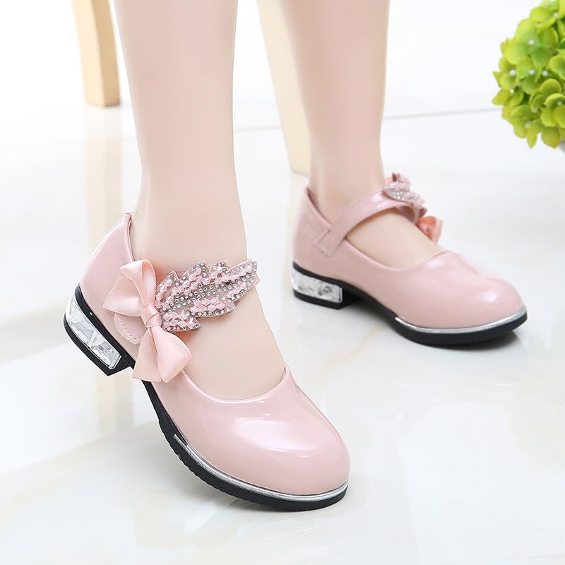 HOT ! Girls Dress Shoes Low Heel Princess Mary Jane Shoes with Bowknot Little Girls Party Wedding Sandals Hook and Loop