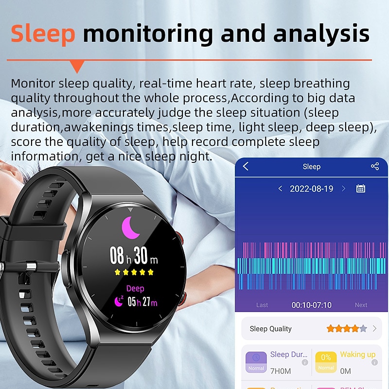 Highlights - The smart health watch uses an upgraded chip and optimized algorithm technology for all-weather health data measurement and analysis. - The "H-Band" APP provides a clear overview of your health status. - The watch can automatically measure heart rate, blood oxygen, blood pressure, body temperature, blood sugar, and other health data. - All-day measurement mode allows continuous monitoring and convenient viewing and analysis of data results in the APP. - The watch records more than 30 minutes of sleep during the day and night and can detect blood oxygen levels during sleep. - The watch can detect apnea and has a low oxygen wake-up feature for health reminders. - Heart rate variability analysis is automatically recorded during sleep and displayed in the APP as Lorenz scatter. - The watch also functions as a timer, alarm clock, weather synchronization, information reminder, and pedometer. - Battery life is 1-3 days with all-day health check enabled and 7-15 days with all-day health check disabled. - 6 months free replacement for quality issues caused by non-human factors, and a two-year warranty. - Customer support is available through the Amazon platform.