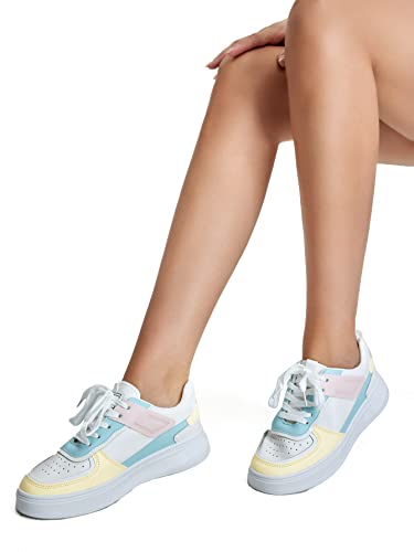WDIRARA Women's Colorblock Lace Up Front Skater Round Toe Shoes Casual Sneakers 5