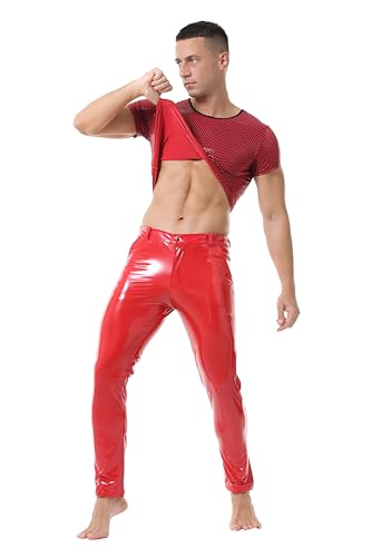• 【Occasions】:This mens wet look leather pants is suitable for costume wear, Disco,performance, 80s/90s party, Hipster hip hop wear, Dancing wear, Christmas wear, Daily wear.