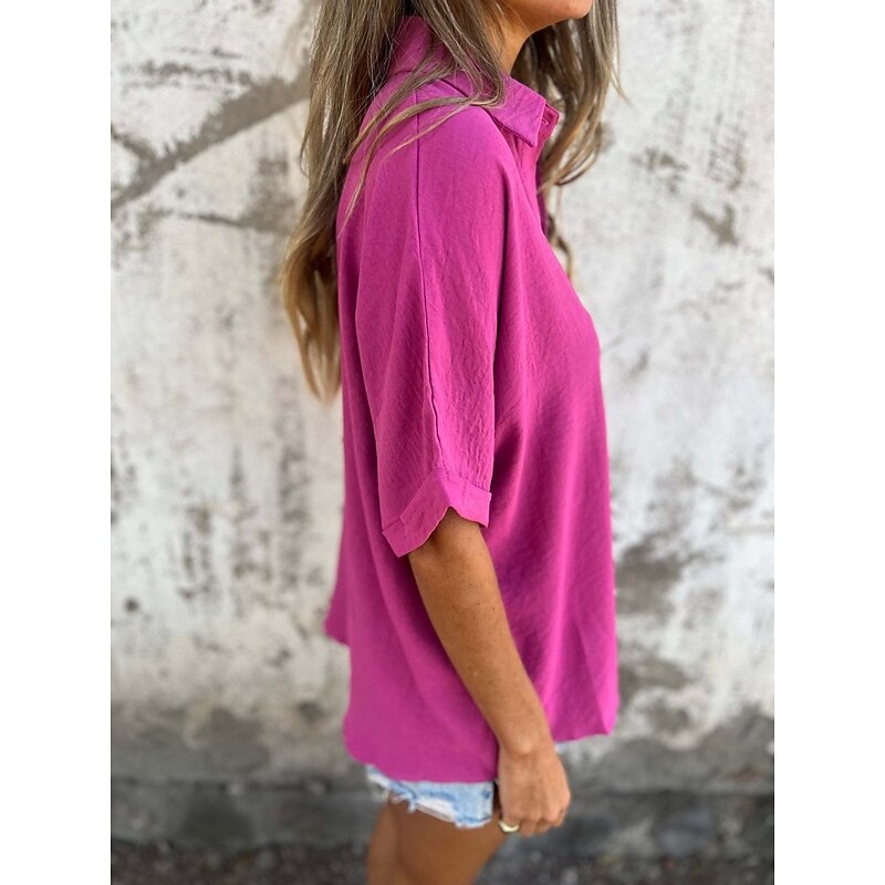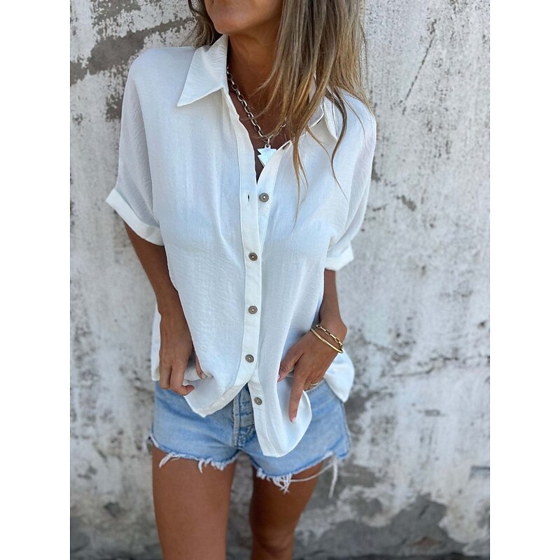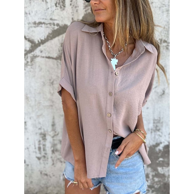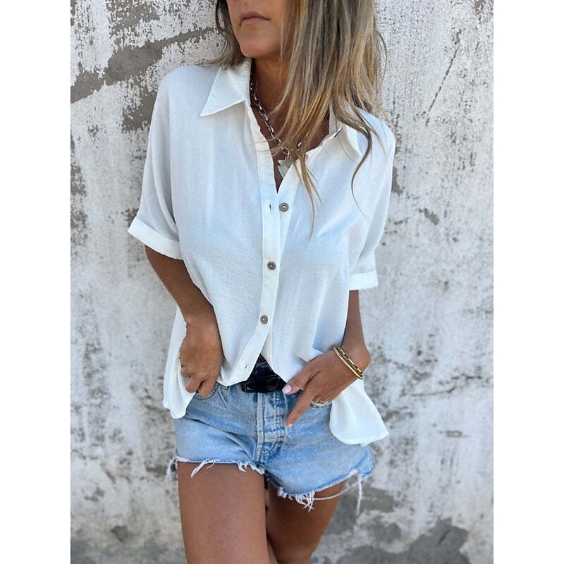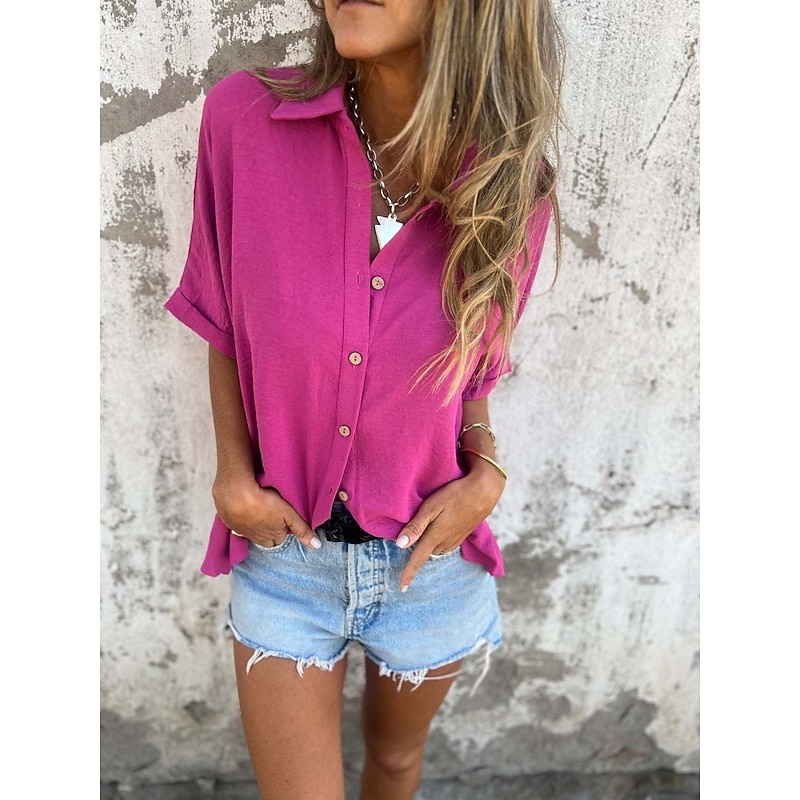 More information about Women's Shirt Plain Basic Modern Half Sleeve Shirt Collar Regular Tops Daily Buttons Black White Red Camel Purple Summer