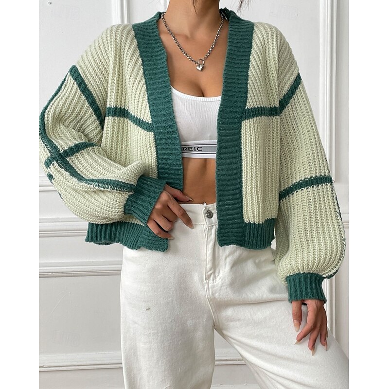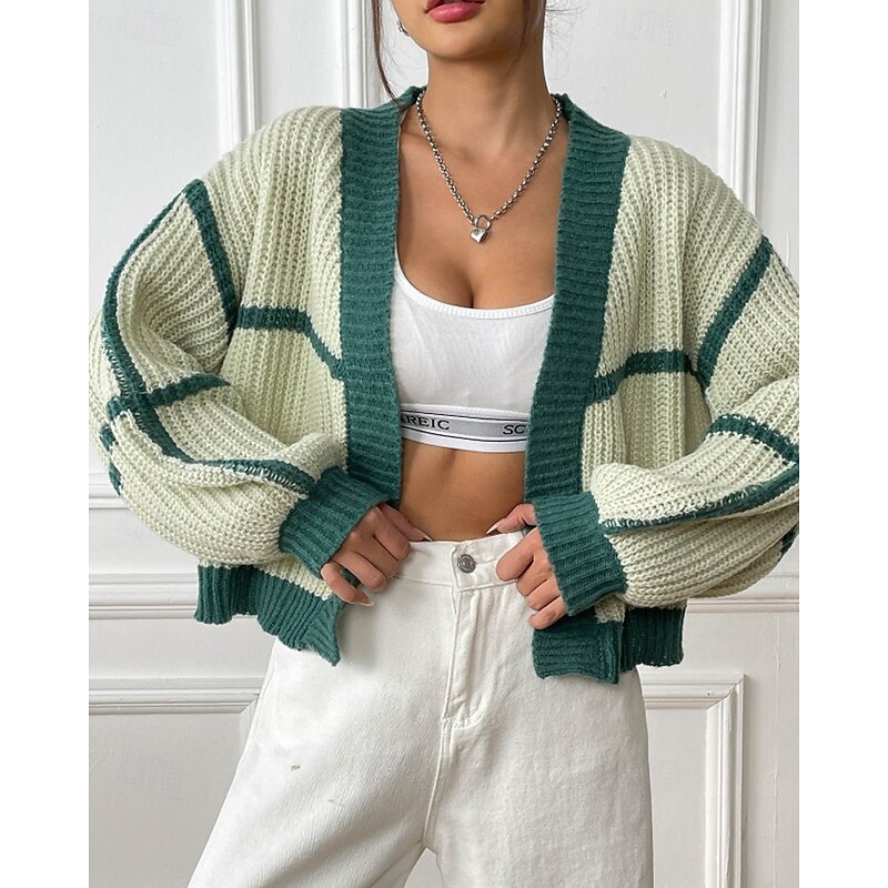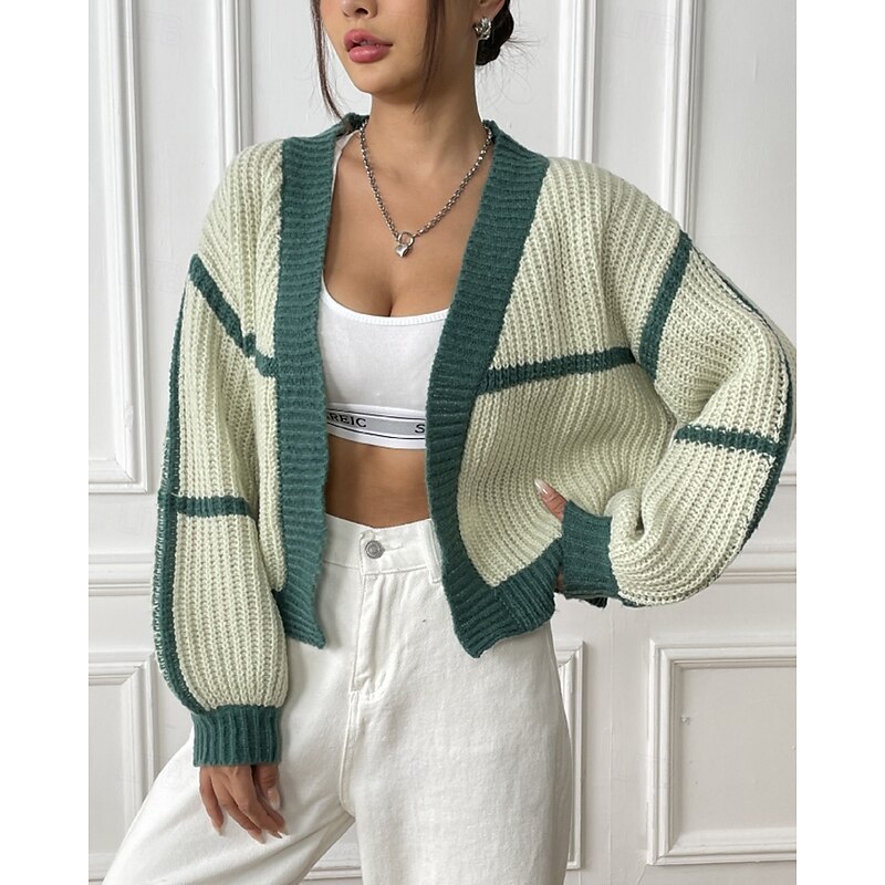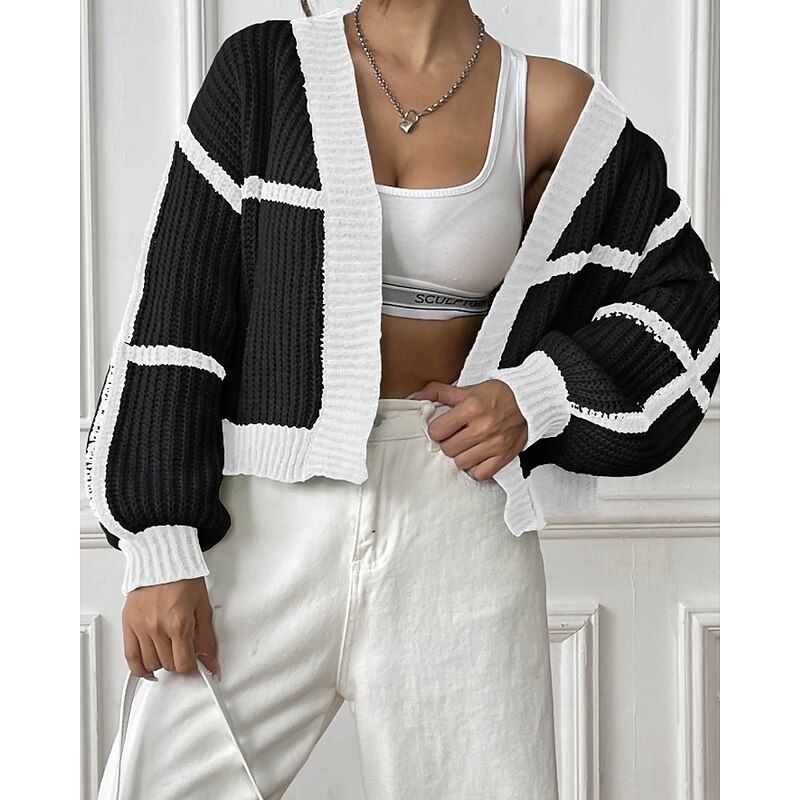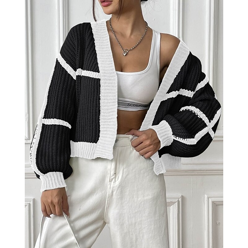 Women's Cardigan Fashion Color Block Ribbed Cowl Patchwork Knitted Long Sleeve Regular Tops Knit Holiday Going out Weekend Black Pink Fall 11