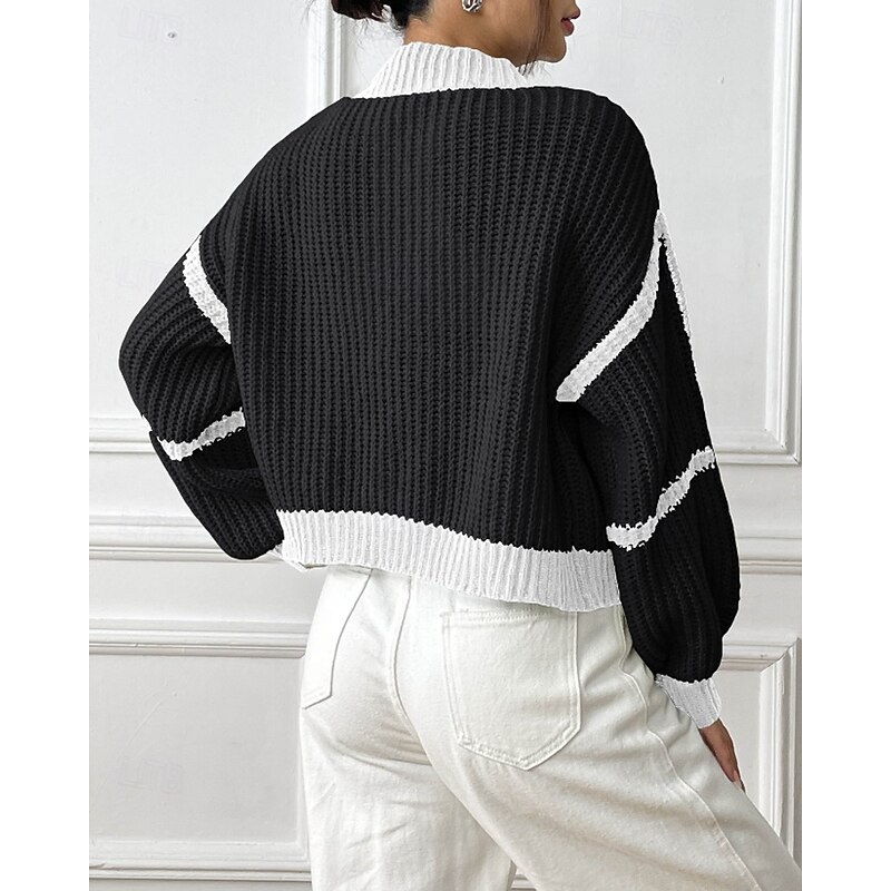 Women's Cardigan Fashion Color Block Ribbed Cowl Patchwork Knitted Long Sleeve Regular Tops Knit Holiday Going out Weekend Black Pink Fall 15