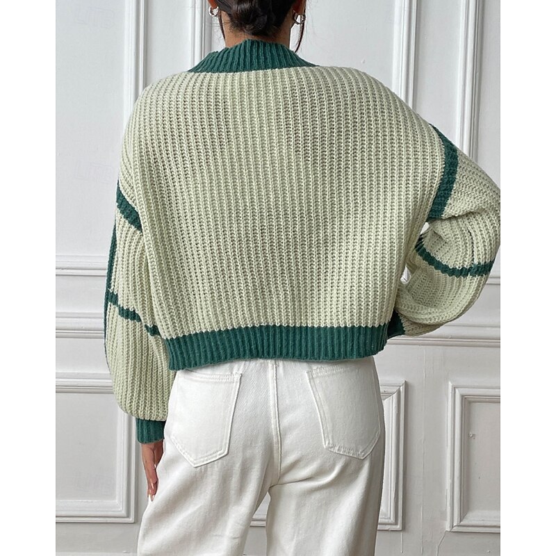 More information about Women's Cardigan Fashion Color Block Ribbed Cowl Patchwork Knitted Long Sleeve Regular Tops Knit Holiday Going out Weekend Black Pink Fall